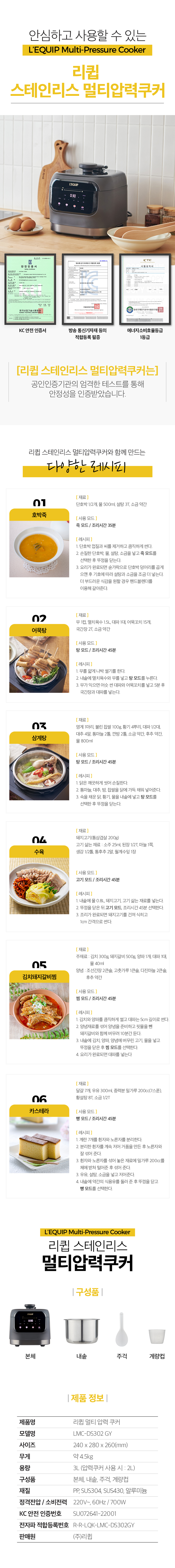 [업체별도배송]리큅 2in1 스테인리스 멀티압력쿠커(LMC-DS302/리큅)